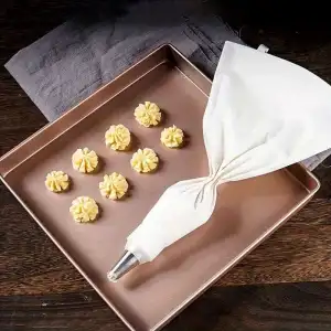 Profesyonel bir şef gibi krema sıkmak artık çok kolay! Çok kullanımlık krema torbamız, size tam kontrol sağlar ve yaratıcılığınızı konuşturmanızı sağlar. Dayanıklı yapısı sayesinde uzun yıllar boyunca size eşlik edecek. Hem pasta süslemede hem de diğer mutfak işlerinizde vazgeçilmeziniz olacak.