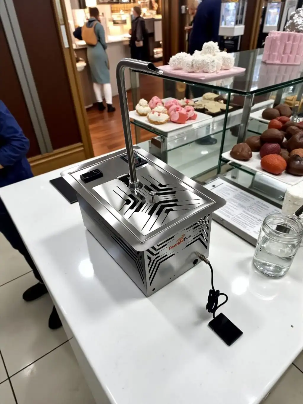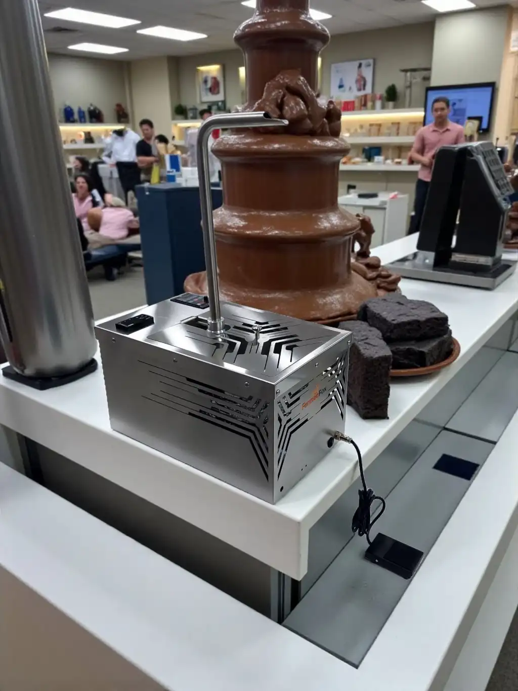Fennec Fox Çikolata Çeşmesi , mağazalarınızın, özel günlerin ve etkinliklerin vazgeçilmezlerinden biri haline gelen, hem şıklığı hem de lezzeti bir araya getiren otomatik bir cihazdır. Müşterilerinize ve Misafirlerinize unutulmaz bir çikolata deneyimi yaşatmak için tasarlanan bu ürün, çikolatayı sürekli akış halinde tutarak görsel bir şölen sunar.