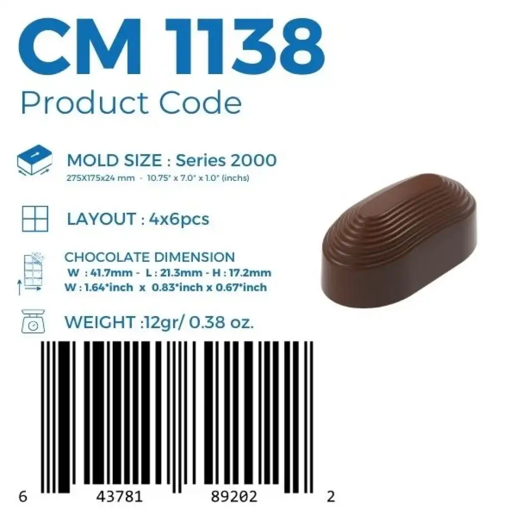 Evde veya işletmenizde profesyonel kalitede çikolatalar üretmek için tasarlanan 13.5 gr Oval Pralin Çikolata Kalıbı, zarafet ve işlevselliği bir araya getiriyor. Bu kalıp, klasik ve şık oval pralinler oluşturmanıza olanak tanıyarak çikolata yapım deneyiminizi bir üst seviyeye taşıyor.