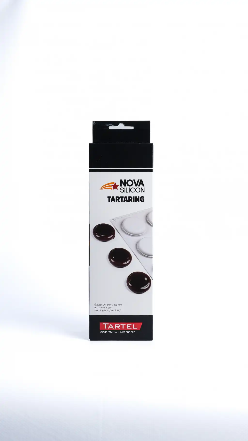 SEO Kısa Açıklama: "Nova Silicon Tartaring silikon kalıp ile profesyonel şeflerin tercihi olan modern halka formlu tatlılar hazırlayın. 9 gözlü, 66.5 mm çapındaki bu kalıp; mousse ve tart sunumlarınızda kusursuz sonuçlar verir. Dayanıklı ve yapışmaz yapısıyla hemen sipariş verin!"